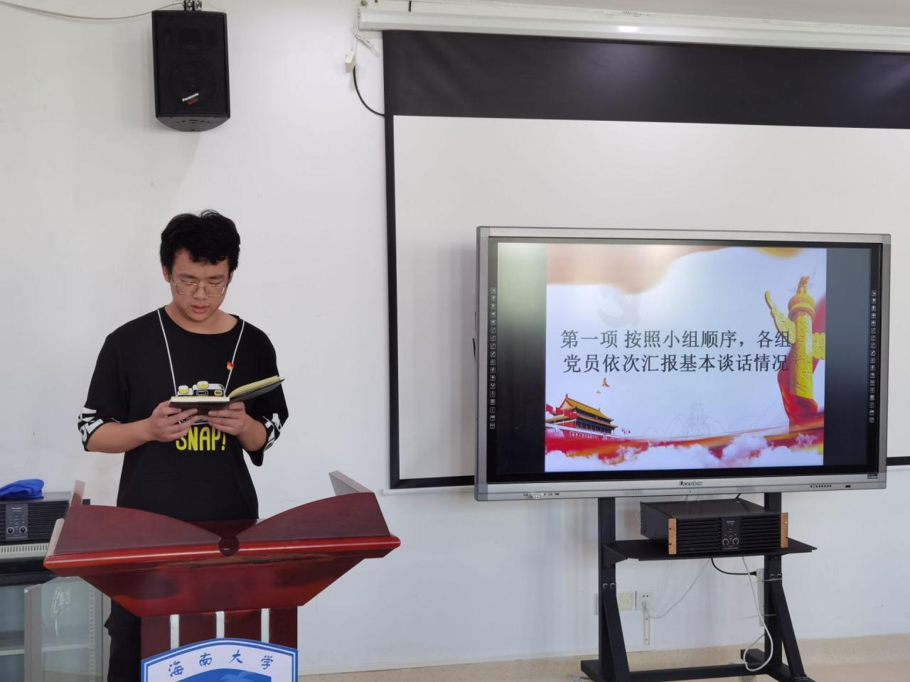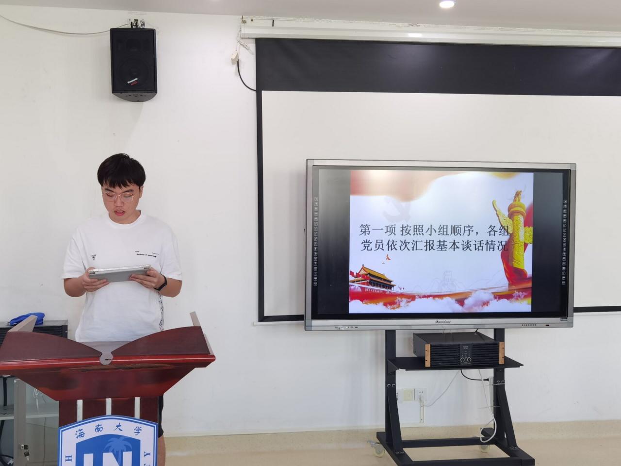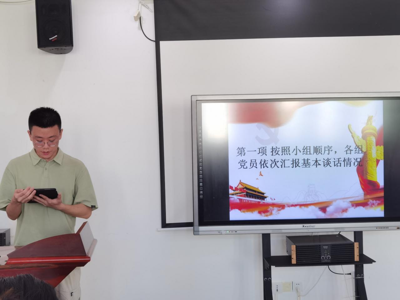 由常傲洋、史佳琦、汪子健、刘汪潮、尹沆炳、刘猛、王立宏7名同志分别代表7个谈话小组,进行基本谈话情况汇报,其他党员进行补充。