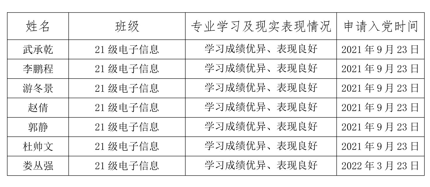通过党组织一定时间的培养教育和考察,经广泛了解党内外群众的意见,支委会讨论决定将 武承乾 等 7 位同志被列为入党积极分子。为进一步增强发展党员工作的透明度,严格发展党员工作程序,根据《中国共产党发展党员工作细则》和《海南大学党员发展工作实施细则》等文件的有关精神,现将拟确定的积极分子名单公示如下,公示期3天,自 2022 年 4月 14 日至 2022 年 4 月 16 日止。如有异议,请以书面形式并署真实姓名,于 2022 年 4 月 16 日前向 海南大学william威廉英国官网研究生第一 党支部反映。
