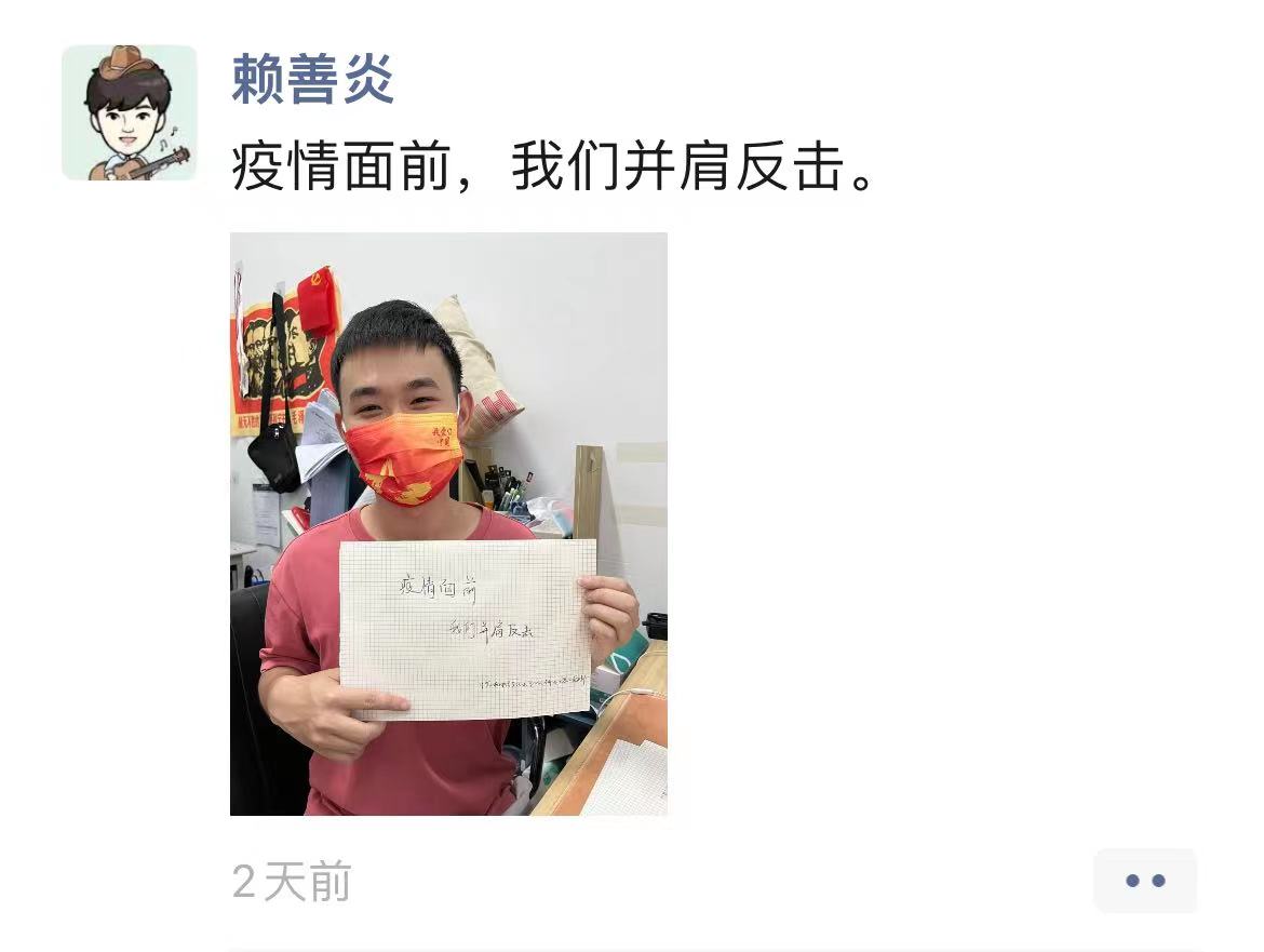 当下疫情形势依旧严峻,我们更需齐心协力,严格响应国家的防疫要求。本次活动贯彻了我党全心全意为人民服务的根本宗旨,发挥了党员的先锋模范带头作用和培养为人民服务的意识和责任。此次“抗疫有我“活动的顺利开展,让疫情防控的概念和重要性更加植根于同学的心中,为学校未来在疫情防控的持久战中打下更为坚实的基础。