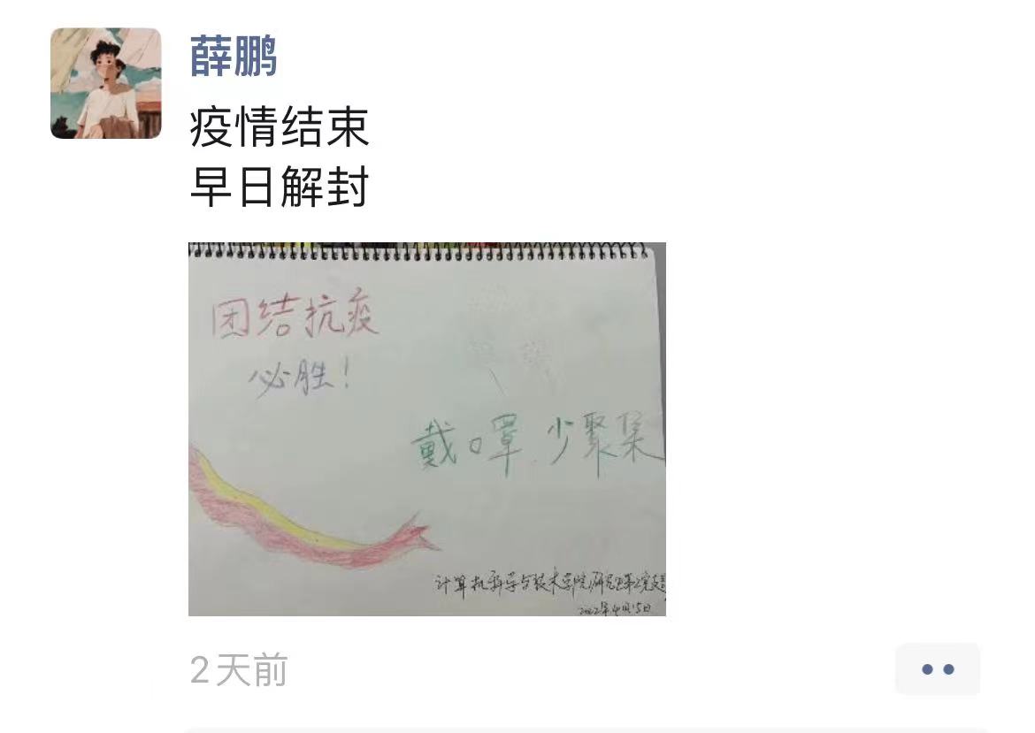 根据学校要求,为了加强学生防疫教育,进一步发挥党员模范作用,带动形成“防控疫情、人人有责”的良好氛围。研究生第二党支部于2022年4月14日晚19点30分召开的组织生活,全体党员就如何结合线上线下“抗疫有我”的主题党日活动展开讨论,与会决定:线上党员要积极宣传抗疫标语并通过社交平台进行宣传,其次线下继续号召党员,拟联合研究生第一党支部积极号召学生党与参与为南区学生宿舍开展爱心送餐活动。