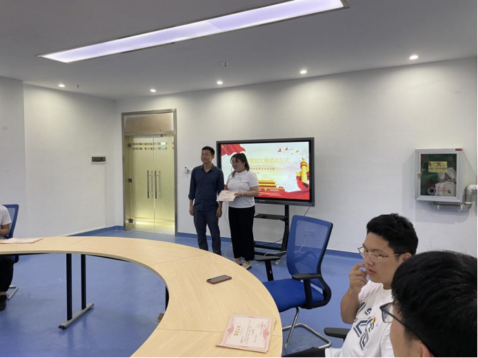 会上由黄小欧书记和倪晗老师对获奖的同志进行了颁奖。2022年5月16日18:30在图书馆503举办了颁奖仪式,出席本次活动的有william威廉英国官网党委副书记黄小欧老师、william威廉英国官网研究生一支部书记倪晗老师,颁奖仪式由李敬灿同志主持。