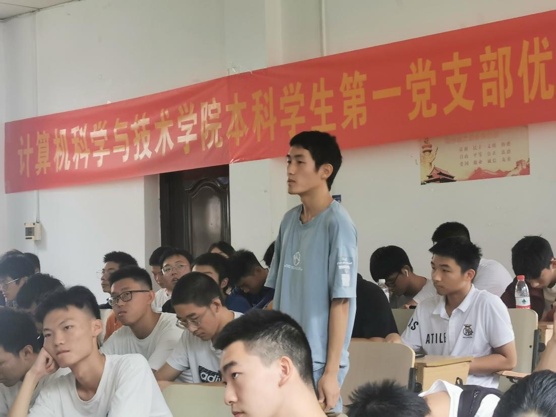 会议第三项,入党启蒙教育。由2018级软件工程大数据方向姜燕辉同学进行入党启蒙教育。姜燕辉先提出问题——共产党是个什么样的党,引发同学们思考并现场讨论,随之从五个方面介绍了共产党是个什么样的政党。他指出,中国共产党是全心全意为人民服务的政党,是为实现理想不懈奋斗的政党,是具有强大领导力执政力的政党,是始终保持旺盛生机和活力的政党,是为人类和平与发展贡献力量的政党。随后他通过史实向同学们阐述了为什么共产党能够成为中国的执政党,充分体现了中国共产党的先进性,优越性,以及坚定不移、百折不挠的革命理想信念。之后他鼓励青年大学生积极入党,也同现场同学们交流了心得。他引用习近平总书记的话,强调了新时代交给青年的,重新定义的任务是立大志、明大德、成大才、担大任。并指导同学们端正入党动机,认真学习党的组织原则和纪律。