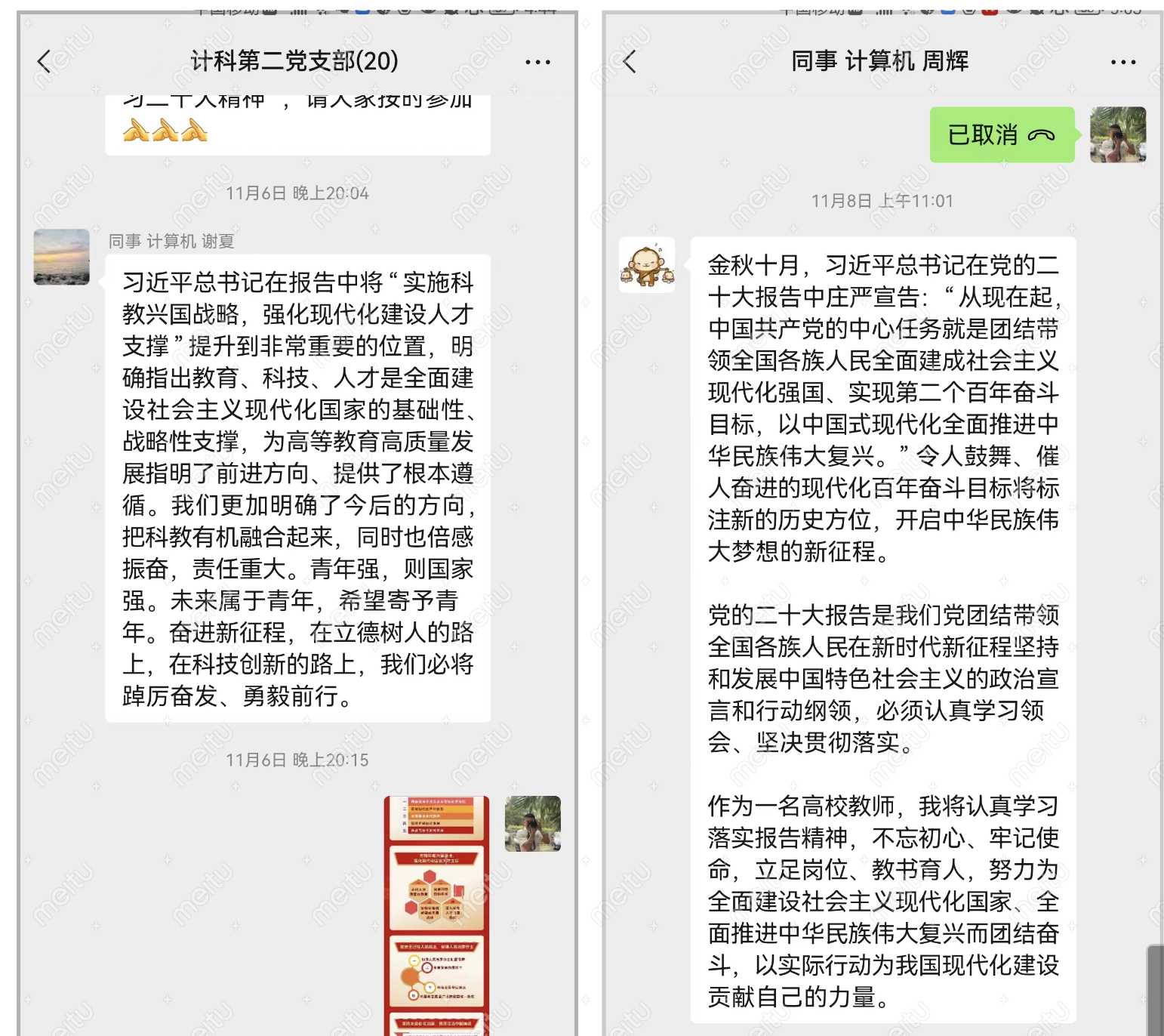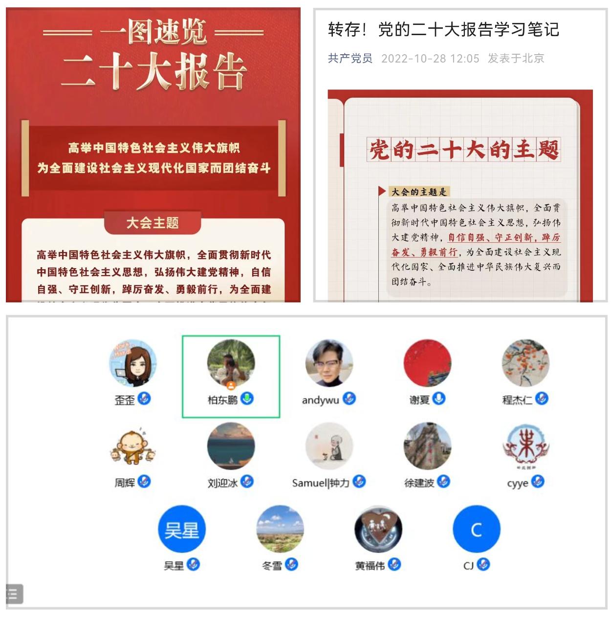 为落实学院党委深入学习中国共产党第二十次全国代表大会精神的要求,领悟习近平新时代中国特色社会主义思想,计算机学院教工第二党支部于2022年11月6日召开11月份组织生活会,以线上会议的形式集体学习中国共产党第二十次全国代表大会精神。