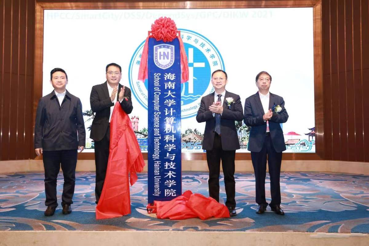 海南省科学技术厅党组成员、副厅长刘作凯,海南省教育厅党委委员、副厅长黎岳南,海南大学校长骆清铭,海南大学william威廉英国官网院长杨天若共同为学院揭牌。