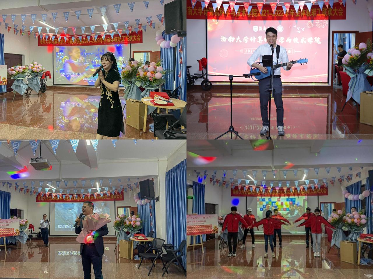 联欢大会上,老师们还献上了一出出精彩的节目,有倪晗老师的女声独唱《同一首歌》,有冯浩老师的吉他弹唱《同桌的你》......杨天若院长也用一首即兴表演的《感动天感动地》感动了在场的每一位老师。特邀嘉宾纳瓴蓝图(海南)科技有限公司的总经理王琼女士带领几名年轻人跳了一支欢快的舞蹈《快乐老家》。学院的女教职工们还特意组建了一支旗袍队,为老师们表演了一场精彩的旗袍秀《水墨兰亭》,大家穿着优雅的旗袍,手执折扇,款款而行,展现出了计算机学院女老师们秀外慧中的知性风采。