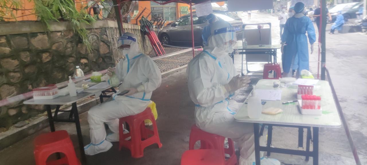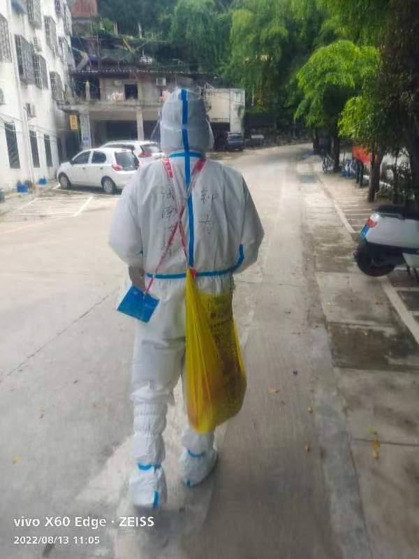8月9日到达三亚,被安排到三亚下洋田社区进行抗疫一线工作。每天早上5:30出发,6:00上岗,六个小时不间断工作,中午12:00才能换下来休息。
