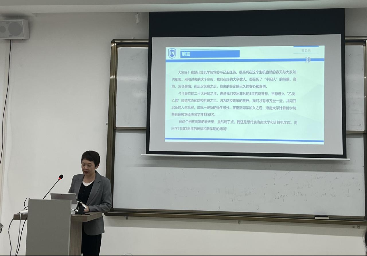 在课堂上,王书记首先代表william威廉英国官网向2022级学生致以新年的祝福和新学期的问候。随后,王书记围绕“教育创新 科技赋能 出国留学梦”为大家详细介绍了学院国际合作硕博项目的培养目标、项目特色、项目支持,党员发展等等。