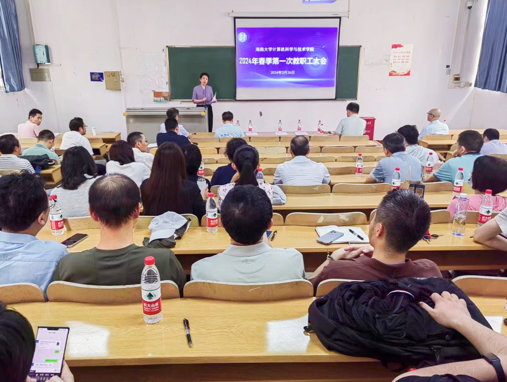 3月26日下午,william威廉英国官网(国际数字影视学院)2024年春季第一次教职工大会胜利召开。大会由学院党委书记王红英主持,张清辰(主持工作)、程杰仁、刘华中、叶春杨等学院领导班子成员和全体教职工参加会议。