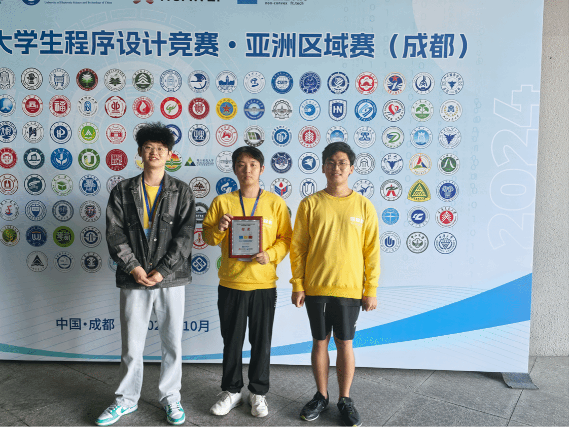 我院高度重视学生创新创业与学科竞赛能力的培养,成立创新创业与学科竞赛工作领导小组。针对创新创业与学科竞赛的学生培养和参赛,我院设置专项支持,开设创新创业与学科竞赛集训室,为创新创业与学科竞赛提供保障。我们组织了234名学生从暑假开始,以周练加讲解的形式进行系统性的训练。ACM-ICPC竞赛团队分别参加了9月17日和9月23日举办的“2024 ICPC Asia EC网络预选赛”全国赛,取得了超前的成绩,为我校争取了9个区域赛参赛名额。其中第一站——第49届国际大学生程序设计竞赛亚洲区域赛成都站,“聚珍伏虎丸”队拿下了荣誉的首胜,该团队由吕珅、方政、郑朴同学组成,经过三名同学的不懈努力,不负众望的在296所院校及企业的309支参赛队伍的剧烈角逐中斩获银奖!