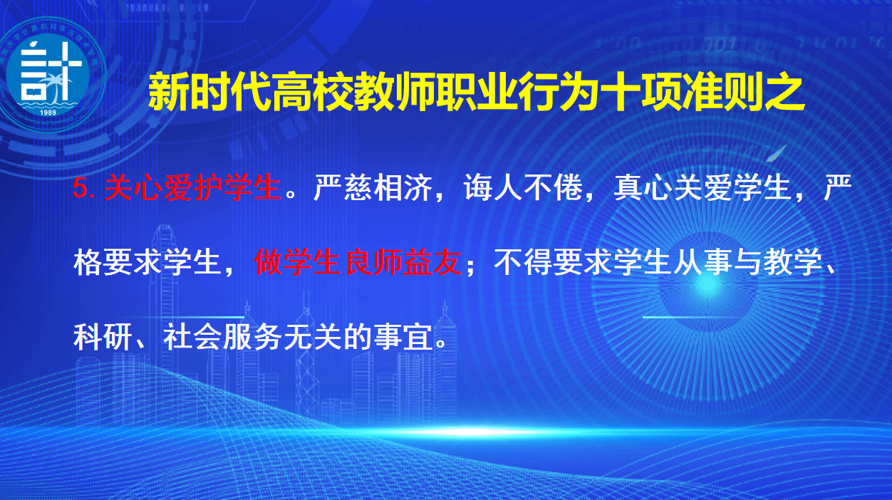 党委书记王红英带领大家共同重温了新时代高校教师职业行为十项准则。她要求,全体教师要认真履行人民教师神圣职责,遵守新时代高校教师职业行为准则,做新时代“四有”好教师,全力培养德智体美劳全面发展的社会主义建设者和接班人。王红英还就学业导师的作用发挥、人才培养、及毕业生就业等工作与大家进行了深入探讨和交流。