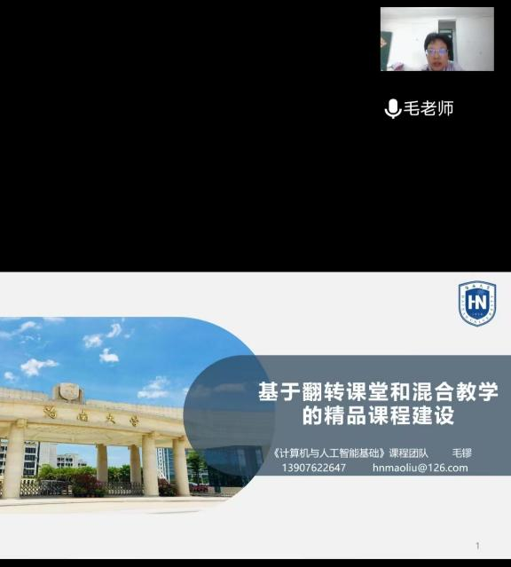 2.《基于翻转课堂和混合教学的精品课程建设》,毛镠主讲。会上,毛镠老师分享了传统课堂与翻转课堂的区别、混合式教学课程设计、精品课程建设一般步骤和网络平台选择见解。