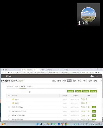 3.《线上教学及一流课程建设经验分享(超星)》,林冬雪主讲。会上,林冬雪老师分享了不同网络教学平台的优点,以超星平台上的《Python语言程序设计》为例,从课程引入、思政融入,教学方法、课堂时间把控、课堂互动等角度,传授线上教学及一流课程建设经验。