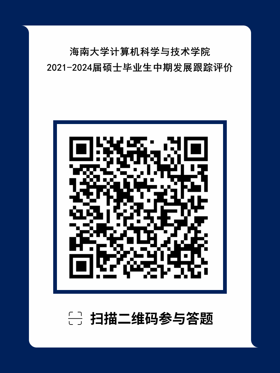评价方式:问卷采用在线答题方式进行,答题入口将通过邮件或短信发送给各位毕业生。您也可以通过点击下方链接或扫描答题二维码参与调研。