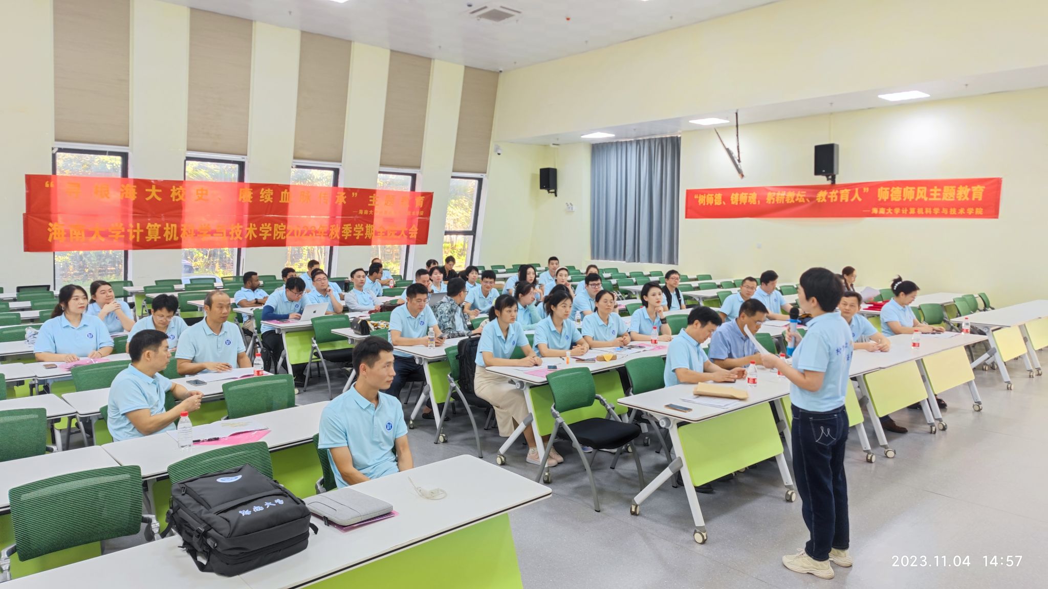 本站讯(记者 柏东鹏)11月4日下午,william威廉英国官网在儋州校区7教101室召开2023年秋季学期全院大会。海南大学学术副校长、计算机学院院长杨天若参加会议并做重要报告,学院党委书记王红英主持会议。