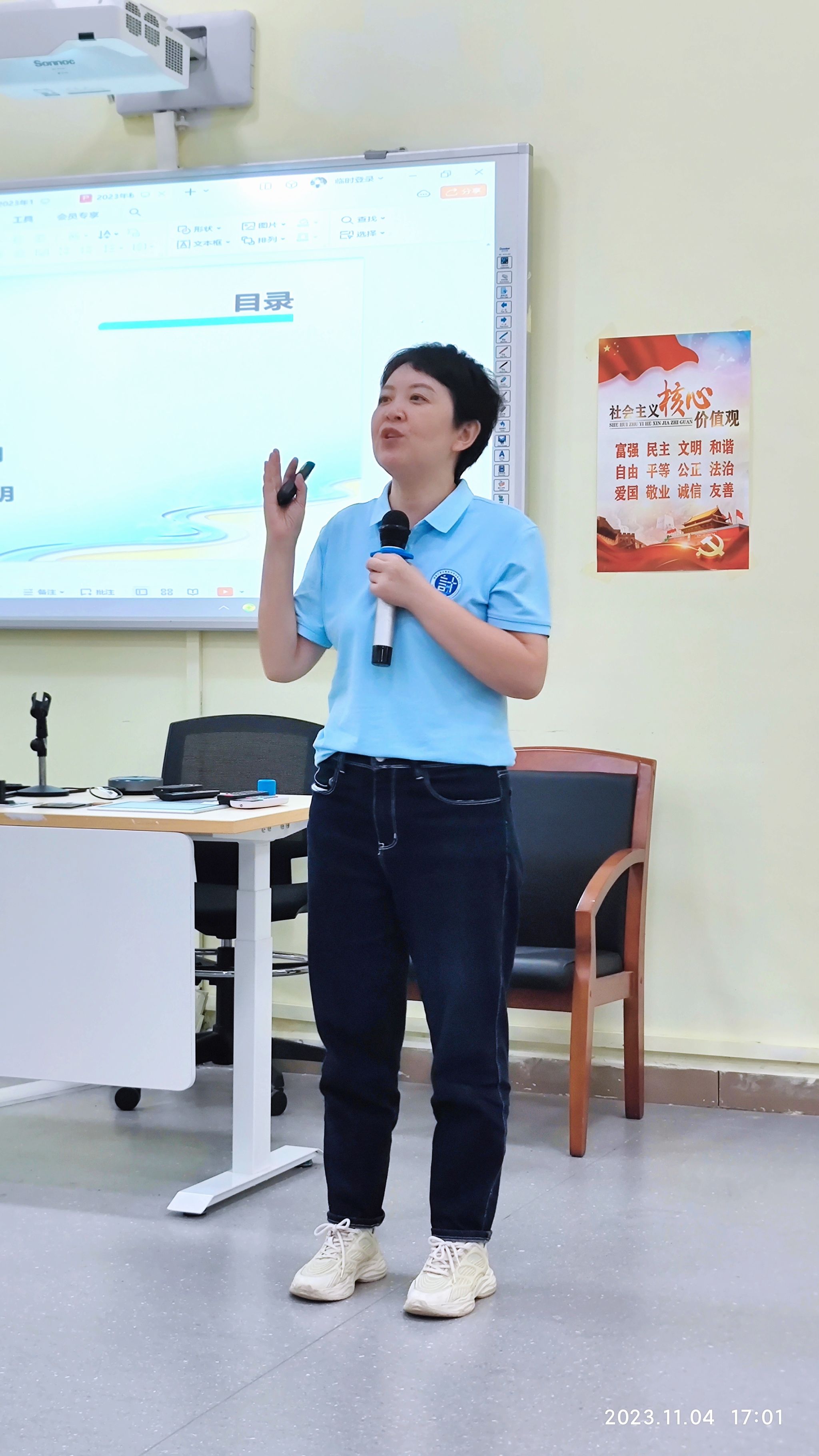 王红英对学院下一步的部分工作进行通报,并总结会议。她指出召开本次会议对学院目前的工作情况向全院教职工进行汇报有助于凝心聚力,她强调以学院的发展框架为中心,人才培养为目标,将专业建在产业链上,构建产学研用一体化。