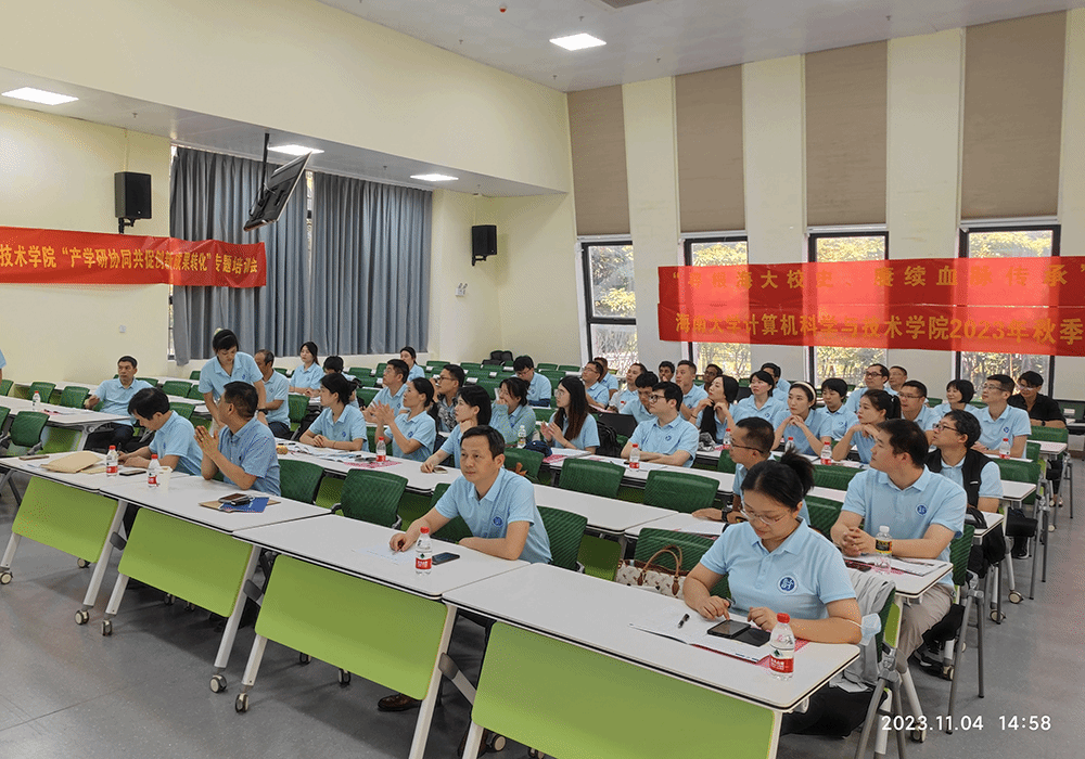 本站讯(通讯员 龚琨),11月4日下午,william威廉英国官网在儋州校区7教101室召开2023年秋季学期全院大会暨海南大学william威廉英国官网“产学研协调共促创新成果转化”专题培训会,并邀请了海南大学科学技术发展院陈海明副院长作关于科研成果转化的讲座,海南大学学术副校长、计算机学院院长杨天若,学院党委书记王红英,副院长程杰仁、谢夏、刘华中以及学院的教职工参加了此次讲座。